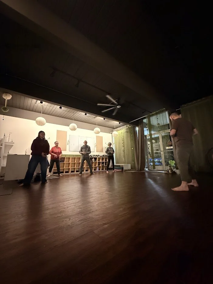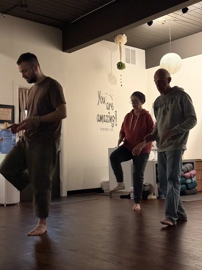 We meet each Wednesday and Sunday from 4:30pm-5:30pm, with an additional 30 minutes at the end set aside for community tea time. Each class begins with Qigong energy work, followed by “the short half” of our Tai Chi flow that connects the Qigong movements. Then for the advanced students we practice the final half of our flow and I answer questions and focus in on specific concepts. Then each class ends with a “cat walk” to practice balance and comfortable walking.